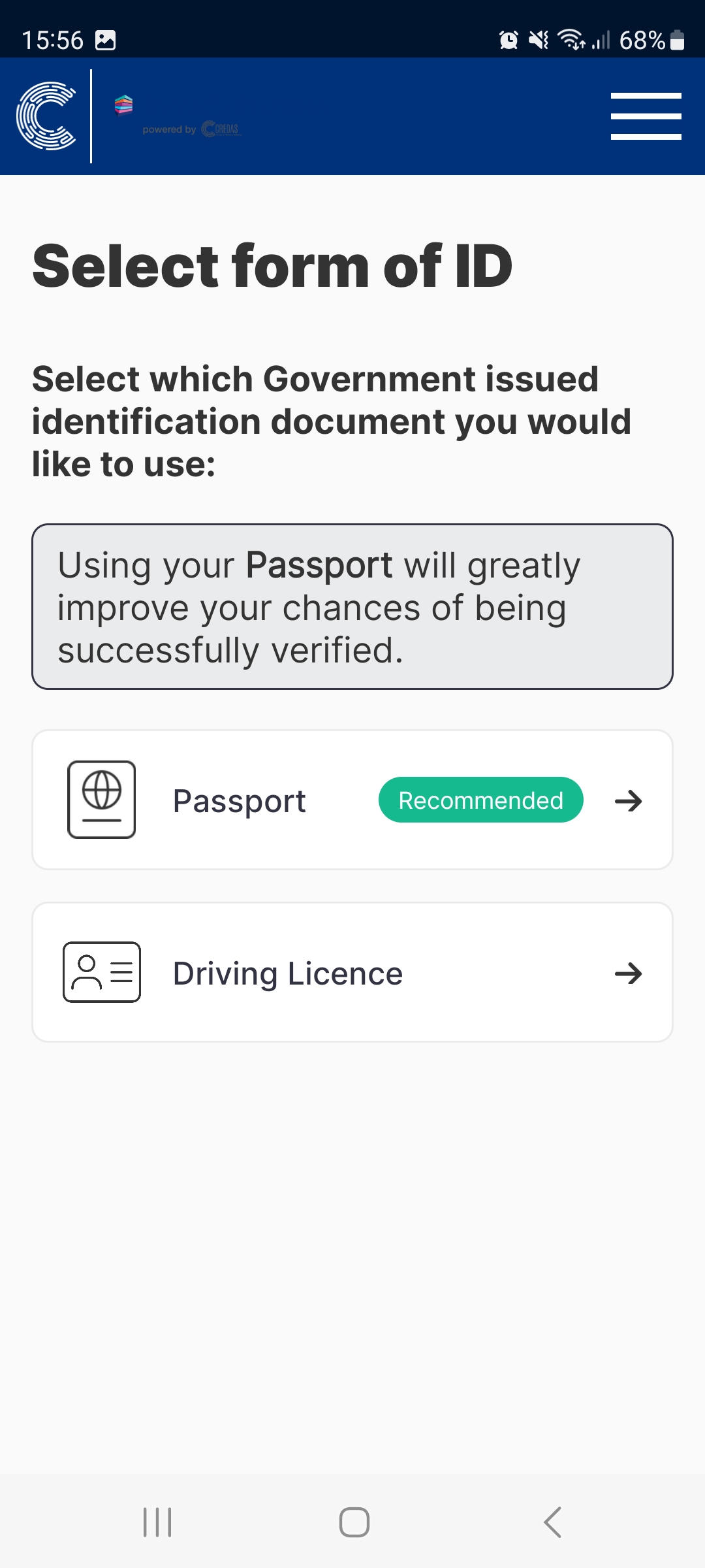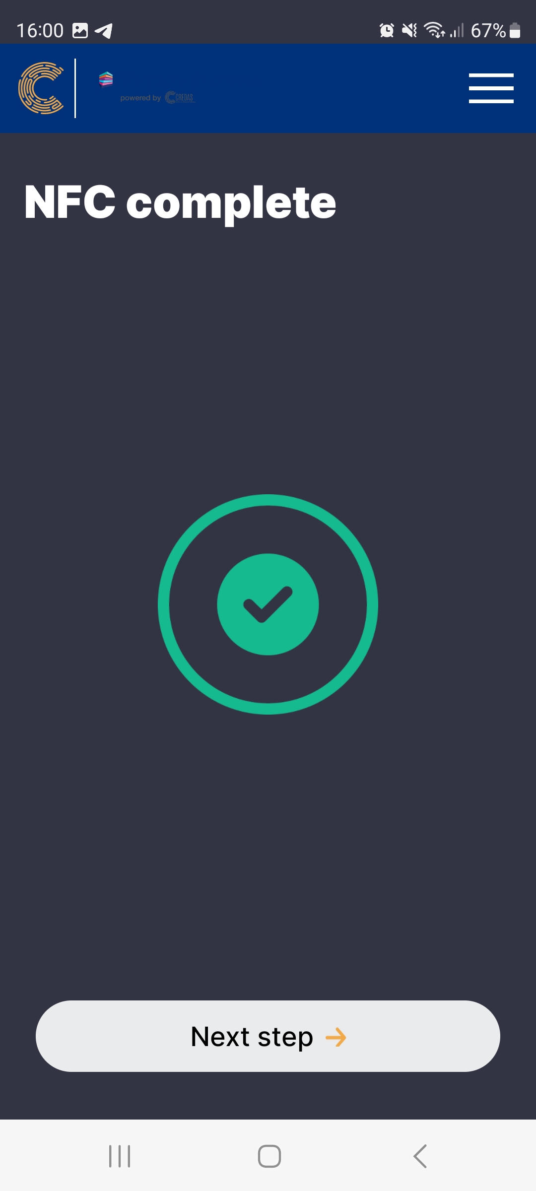 - If your client has selected to use their passport as their identity document, during the next step, they will be asked to scan the NFC chip using contactless technology - holding the phone in physical contact with the passport, with the phone on top of the passport just as they would when completing a contactless payment.