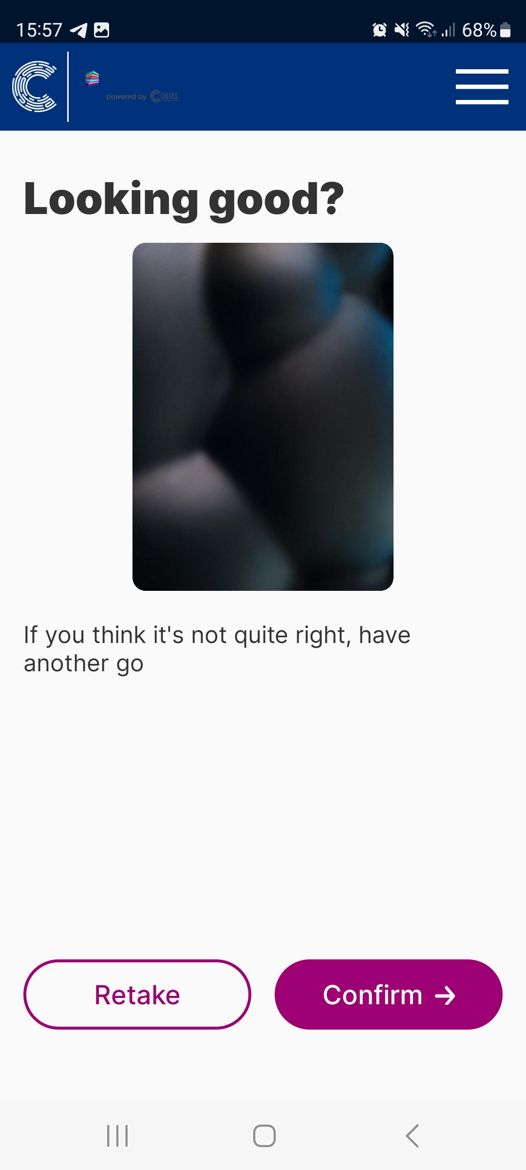 - The guidance on the screen will help them to take the best picture possible, ensuring the eyes and face line up with the gridlines. Once the picture is taken, your client can review and retake it before submitting: