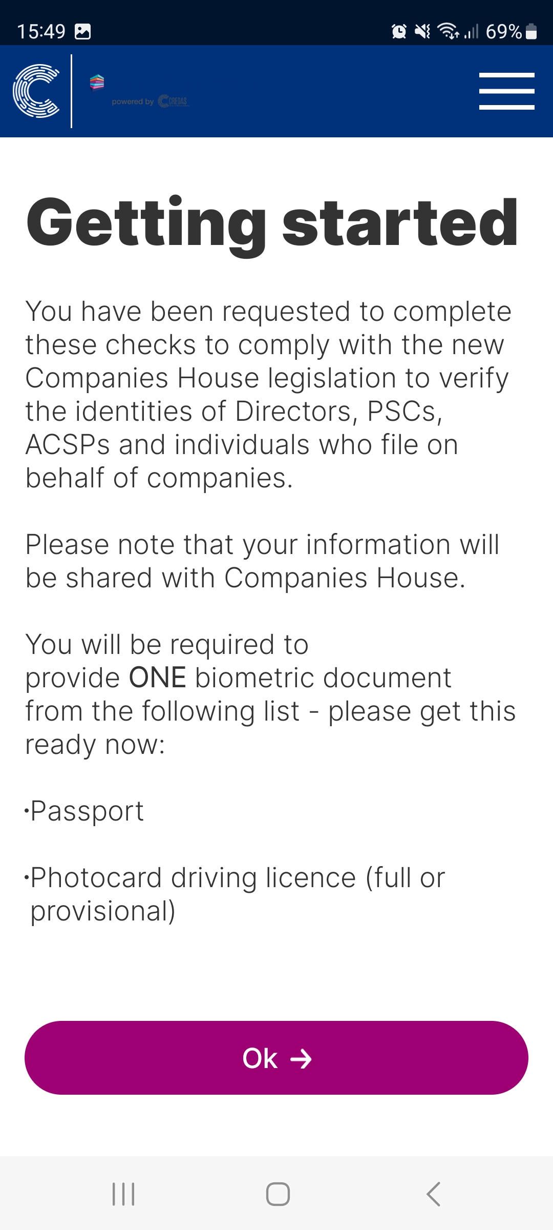 This journey applies when the option to initiate ‘Biometric Identity Check for Companies House - Option 1’ is selected in the wizard.